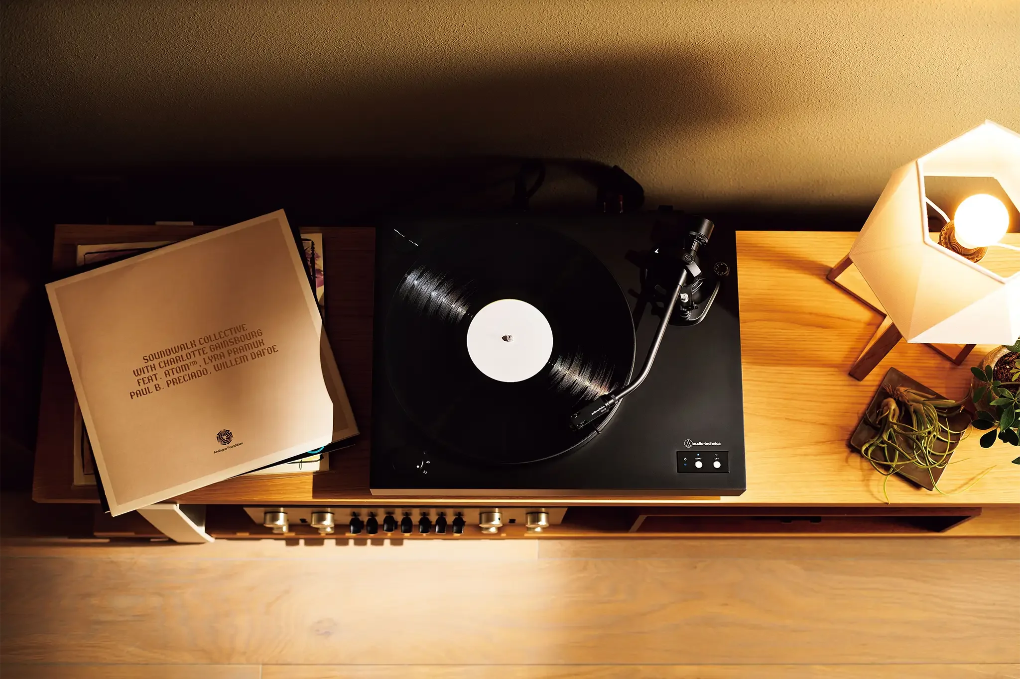 Audio Technica AT-LP8X không tích hợp phono preamp bên trong. Mâm đĩa than này chỉ có đầu ra phono level (RCA) thuần túy, nên bạn cần kết nối với ampli có cổng Phono MM tích hợp hoặc dùng phono preamp riêng bên ngoài để khuếch đại tín hiệu đúng mức line level. Thiết kế này hướng đến audiophile muốn tín hiệu sạch nhất có thể, tránh thêm mạch điện tử không cần thiết bên trong mâm (như Bluetooth hay preamp built-in thường thấy ở các model entry-level).