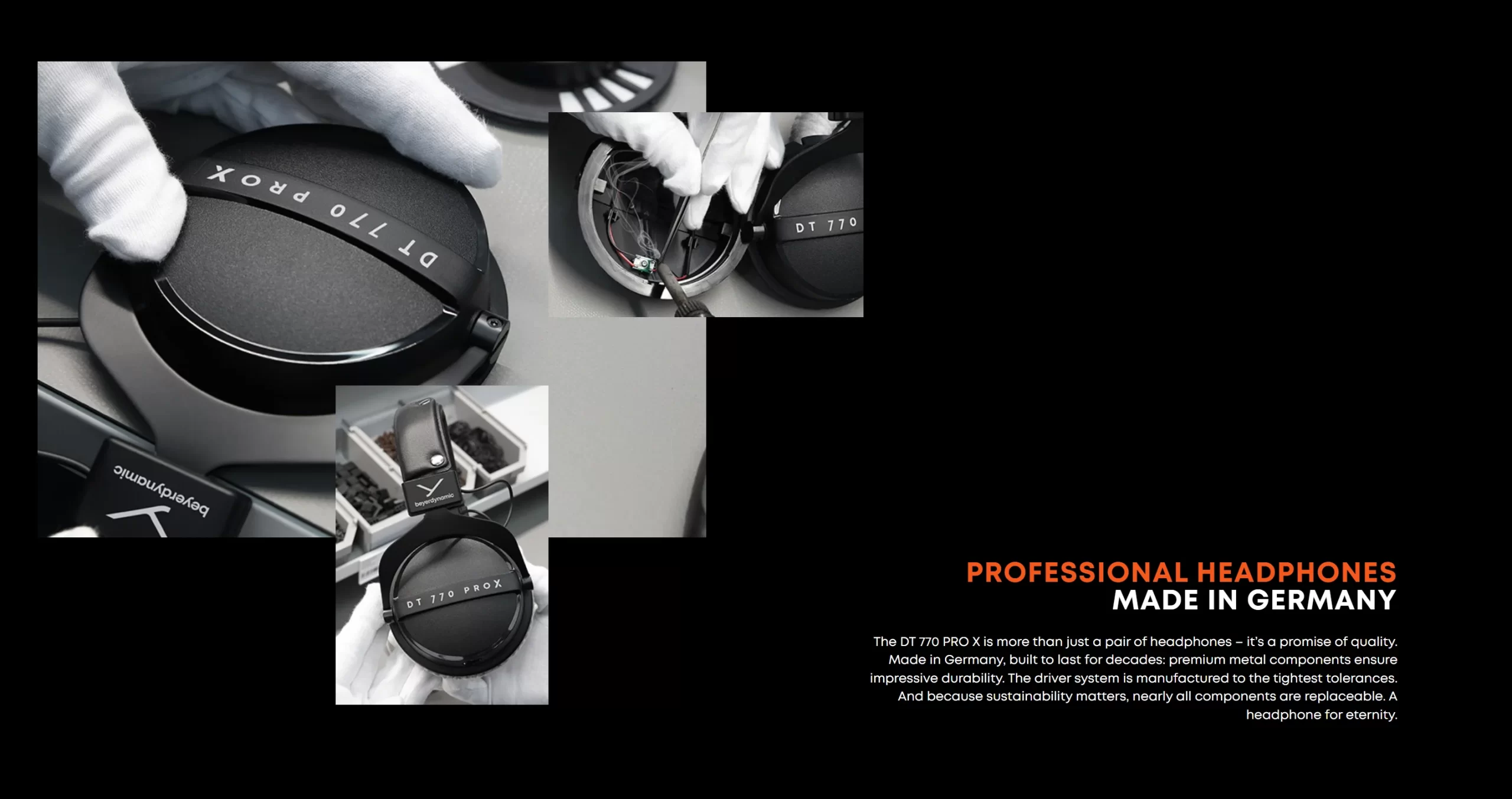 Được sản xuất thủ công tại Đức với các vật liệu cao cấp. Đảm bảo độ bền và tuổi thọ lâu dài. Hầu hết các bộ phận của tai nghe đều có thể thay thế được, tăng tính bền vững cho sản phẩm.
