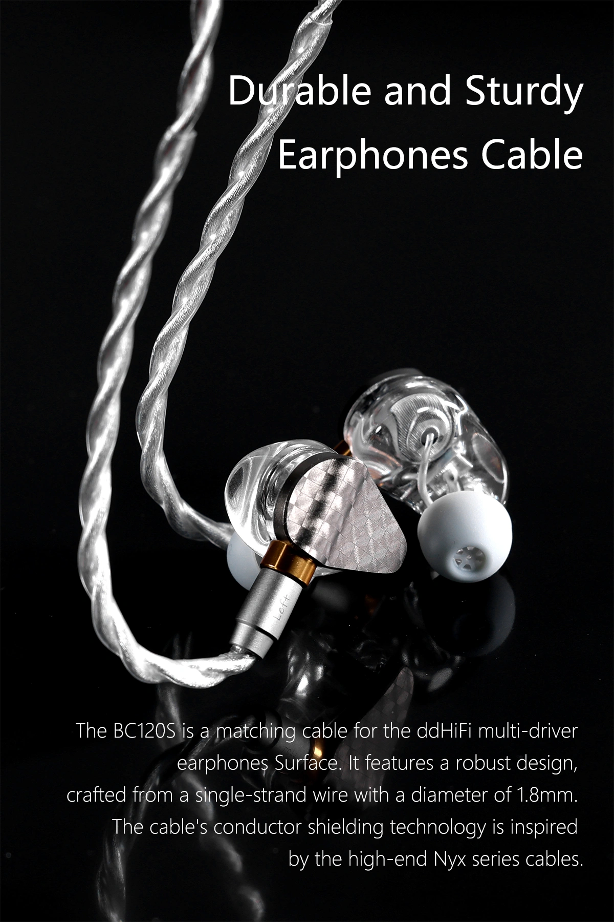 DDHiFi BC120S (thường gọi là Surface Earphones Cable) là mẫu cáp tai nghe upgrade balanced cao cấp từ hãng DDHiFi (Trung Quốc), được thiết kế làm cáp stock đi kèm với IEM ddHiFi Surface (ra mắt năm 2025). Đây là lựa chọn lý tưởng cho audiophile muốn nâng cấp cáp cho các IEM sử dụng connector 0.78mm 2-pin (loại dài 3.5mm recessed), tận dụng kết nối balanced 4.4mm để tối ưu hóa chất lượng âm thanh từ nguồn phát portable hoặc desktop.