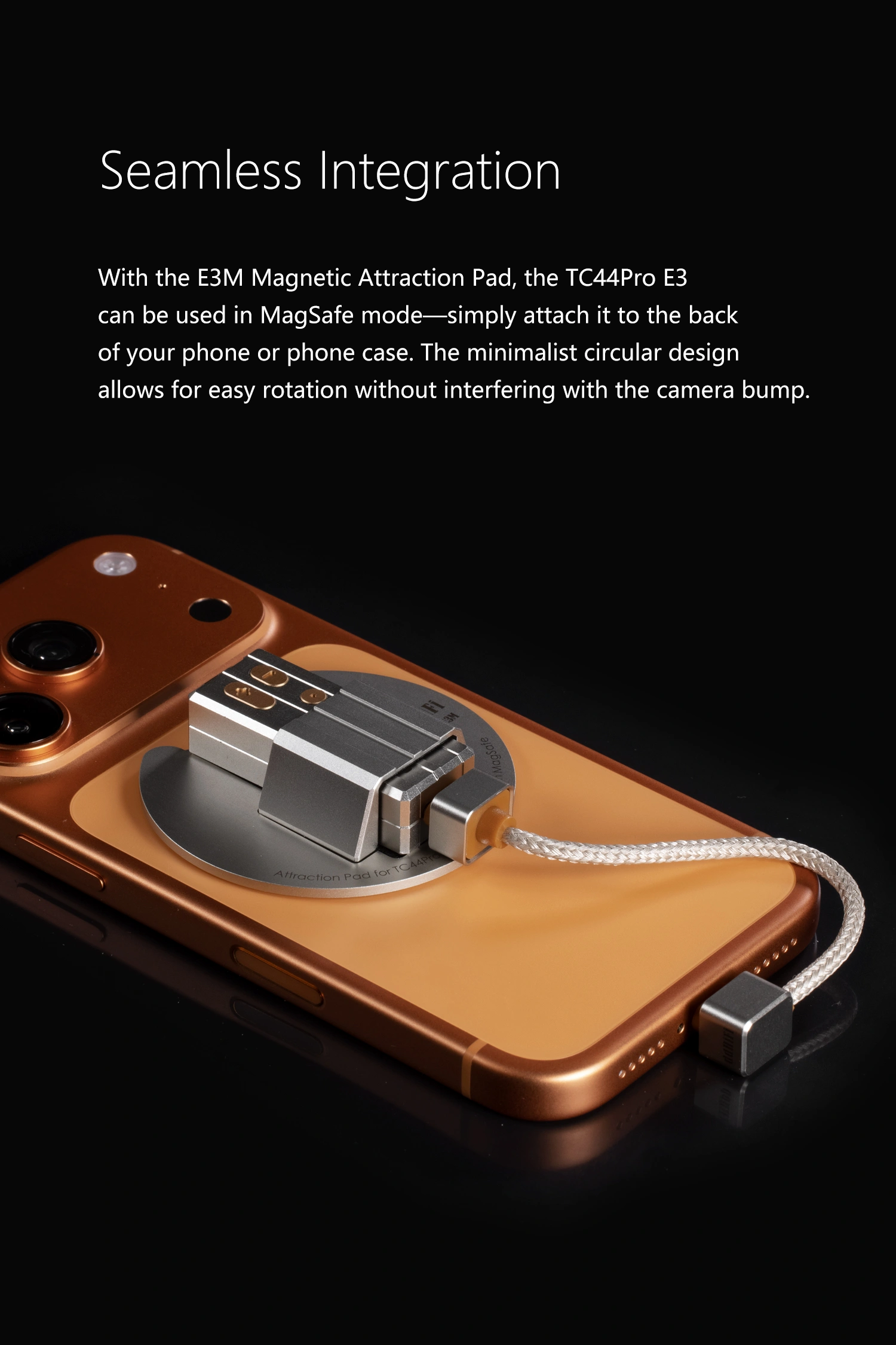 Được thiết kế độc quyền cho DAC/Amp di động DDHiFi TC44Pro E3. Có thể gắn từ tính vào mặt sau của điện thoại hoặc ốp lưng điện thoại. Tương thích với chuẩn MagSafe (hoặc các thiết bị/ốp lưng có vòng từ tính).